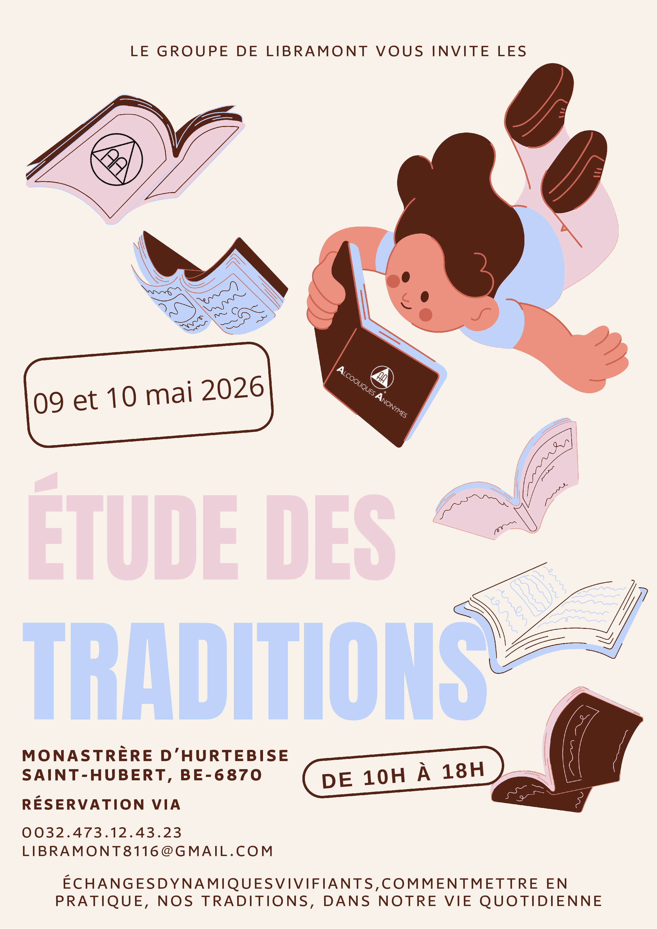 Les Douze Étapes étant à la base du rétablissement personnel chez les AA, nous consacrerons nos réunions du jeudi soir à l’étude de chacune des Étapes. Nous appliquerons aussi, à cette réunion, l’étude des Douze Traditions.